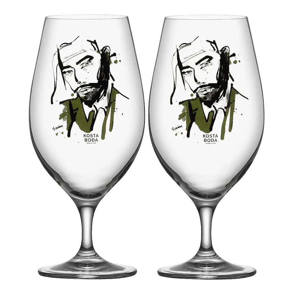 2-pack ölglas från Kosta Boda, serien All About You.Glasen har motiv inspirerade av modevärlden, här i grönt med "Want Him".