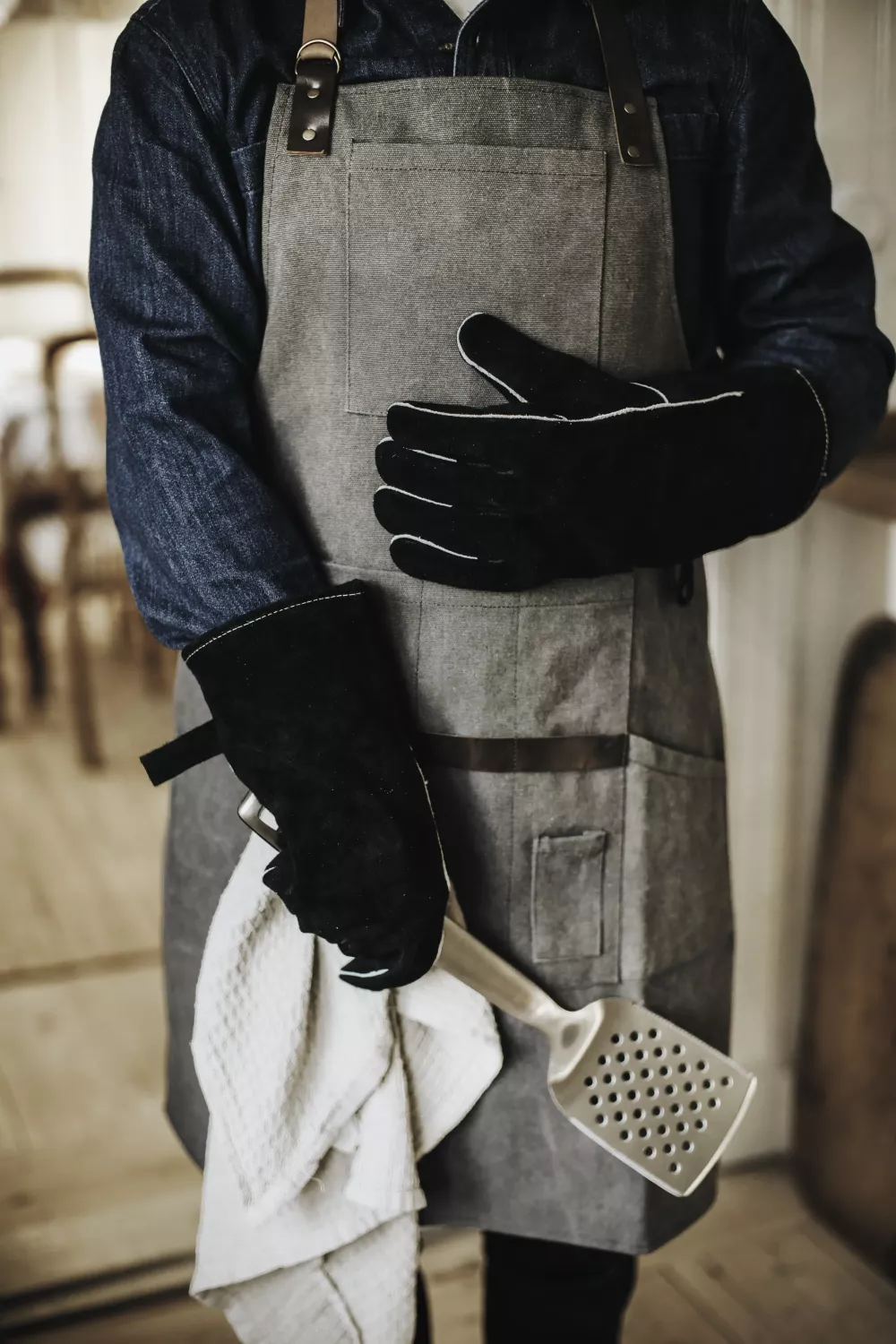 Dorre BBQ grillhandskar i svart läder, 35x17 cm. Ger bästa skydd och komfort vid grillning. Enkelt rengöring med fuktig trasa.
