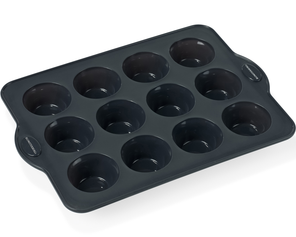 Muffinsform i silikon med 12 fack och stålkant. Passar även småbröd. Tål frys, maskindisk och temperaturer från -20°C till 220°C.
