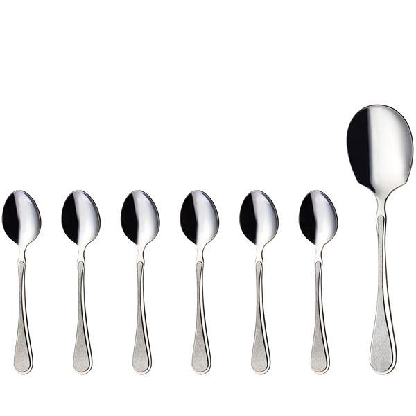 Carina dessertset 7 delar från Hardanger. Design i borstat stål. Hållbart rostfritt. Passar både vardag och fest. Matcha med övriga delar i serien.