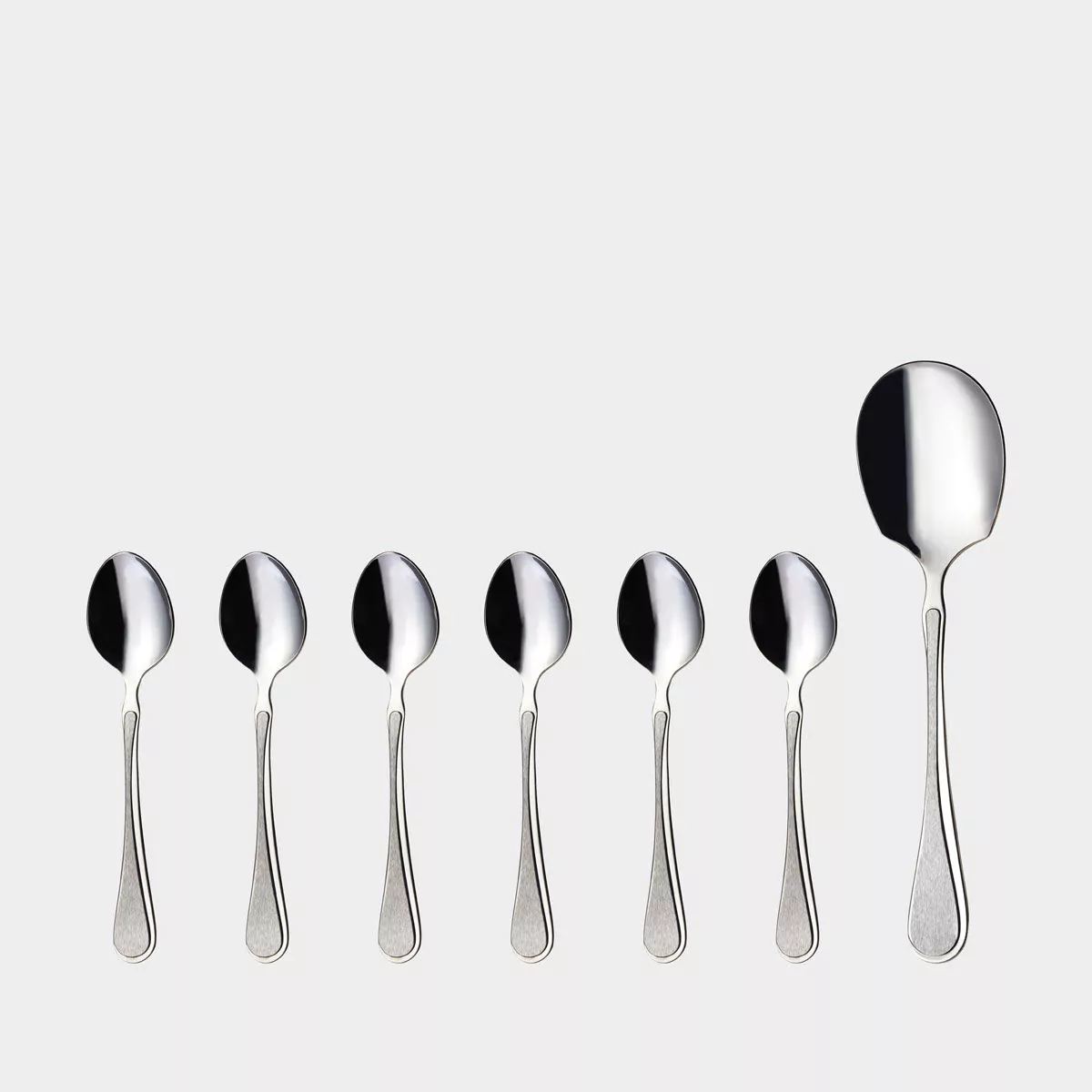 Tillverkat i högkvalitativt rostfritt stål ger setet god hållbarhet och lång livslängd. Formen ligger bekvämt i handen och är välbalanserad vid servering.