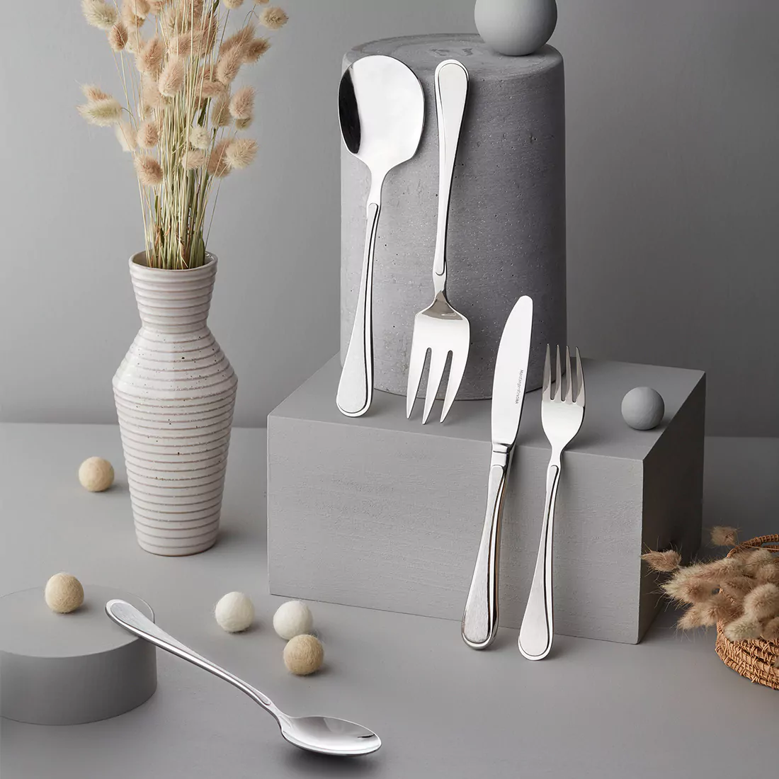 Besticken är tillverkade i rostfritt stål, vilket ger god hållbarhet, ett behagligt grepp och enkel rengöring. Setet är komplett för servering och ger ett enhetligt och elegant intryck på det dukade bordet.