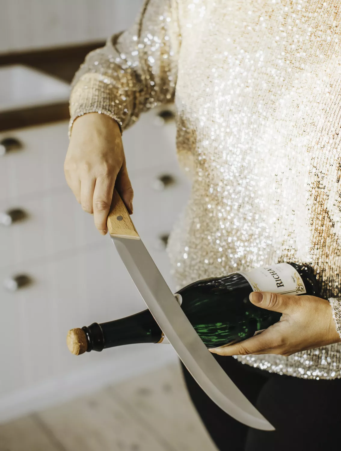 Charlie Champagnesabel 41 cm från Dorre – stilren sabrage i silver med trähandtag som imponerar på gästerna vid varje fest.