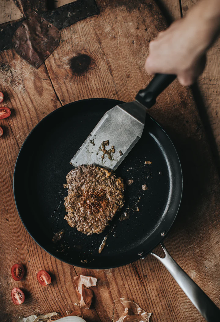 Pannan är tillverkad i 3,5 mm aluminium med en rostfri bottenplatta (SS430) som säkerställer jämn värmefördelning och fungerar på alla spishällar, inklusive induktion. Den hårdanodiserade utsidan tål höga temperaturer och bidrar till lång livslängd.