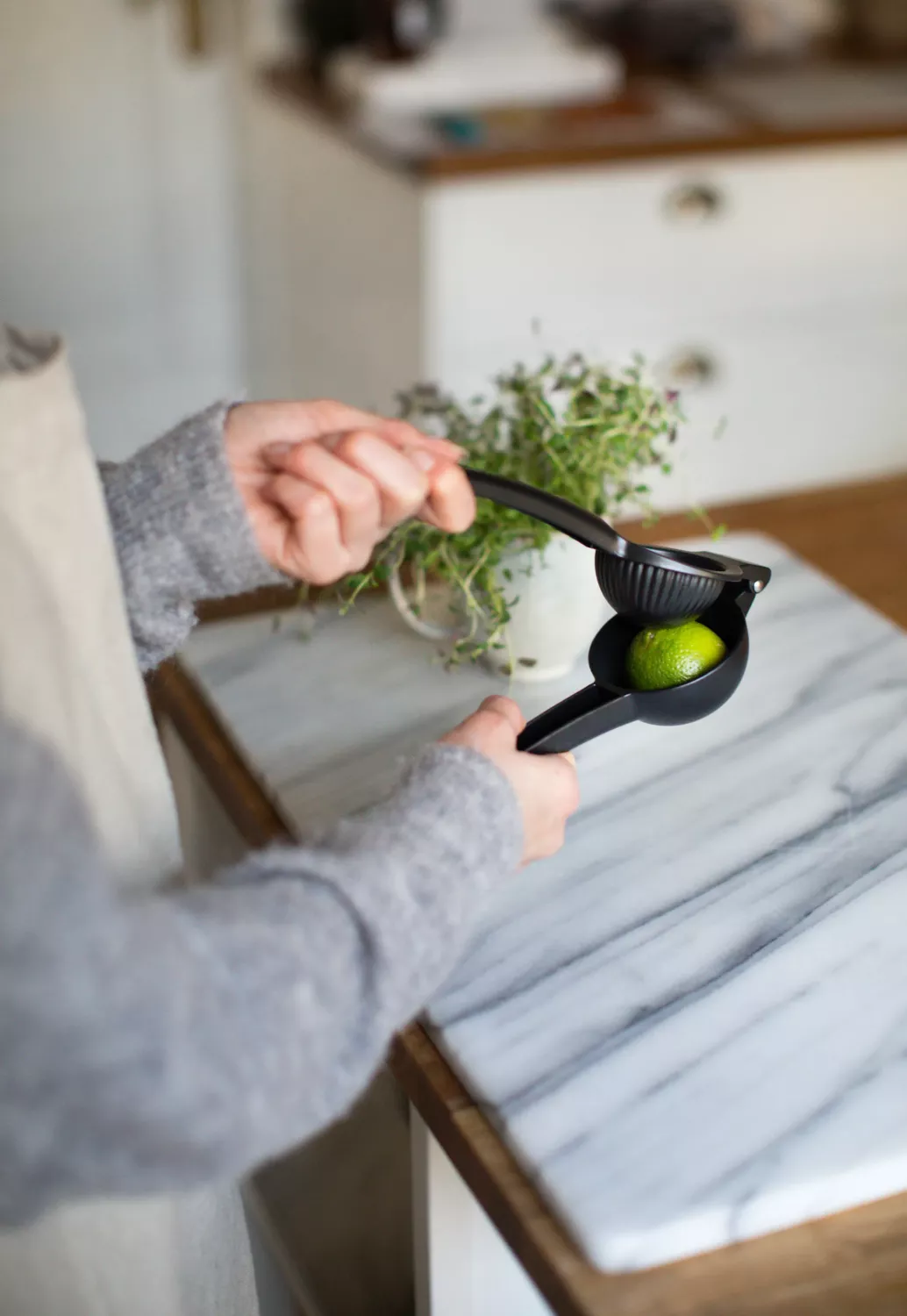 Stabil citruspress i svart aluminium för snabb pressning av citron eller lime