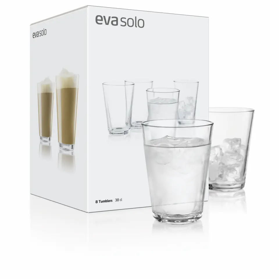 Dricksglas 8-pack från Eva Solo i härdat glas. Tål både värme och kyla. Perfekta till vardag. Maskindiska. Stilrena. Praktiska. Hållbara.