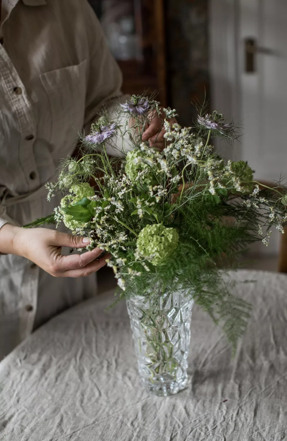 Kristallvas med konisk form perfekt för snittblommor och bordets mittpunkt