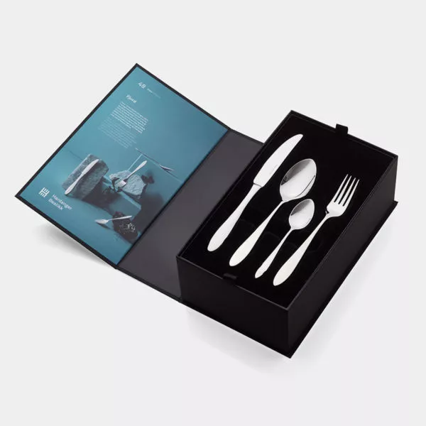 Fjord bestickset 48 delar från Hardanger Bestikk, formgivet av Odd Leikvoll med inspiration från norska berg. Serien kombinerar mjuka och hårda linjer i skandinavisk minimalism. Besticken är tillverkade i rostfritt stål med 18 % krom och 10 % nickel, vilket ger hög kvalitet och lång hållbarhet. Setet innehåller 12 knivar (23 cm), 12 gafflar (19,9 cm), 12 matskedar (20,5 cm) och 12 teskedar (14 cm). Perfekt både för vardag och fest, och populärt som gåva vid bröllop, student eller inflyttning. Komplettera gärna med fler delar ur Fjord-serien.