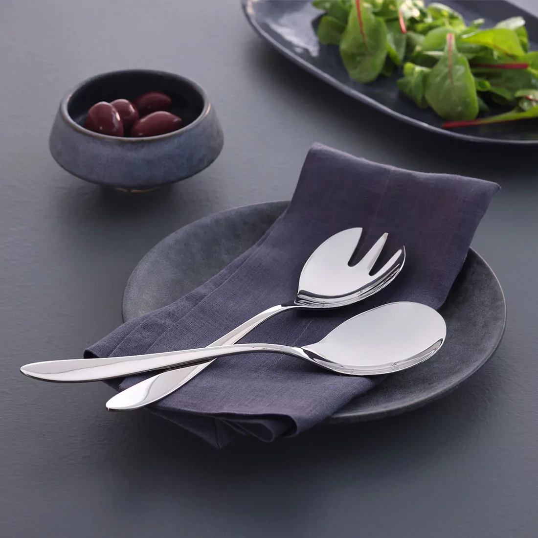 Salladsset 2 delar i rostfritt stål med stilren Fjord-design för elegant servering.