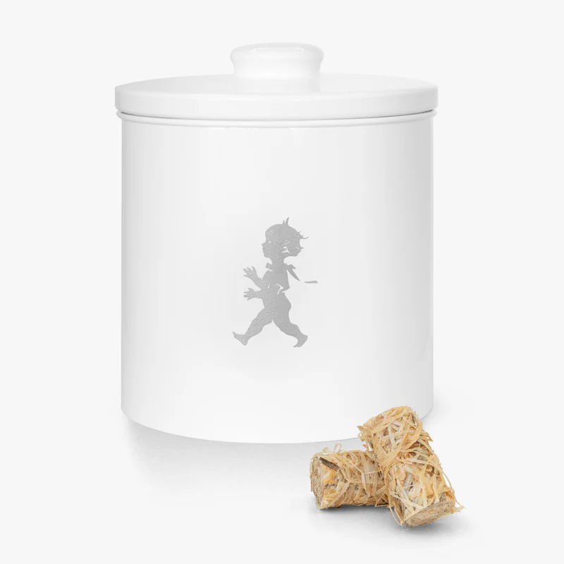 Vit förvaringsburk i plåt från Solstickan för braständare. Med tätslutande lock och klassisk design. Ø20×17 cm. Levereras utan innehåll.