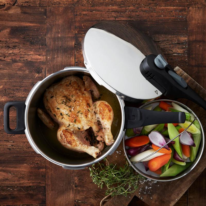 Vad kan jag koka i tryckkokare? Nästan allt. Du kan koka, ångkoka, bräsera, bryna, tillaga kött, fisk, grönsaker, potatis, ris, grytor och soppor.