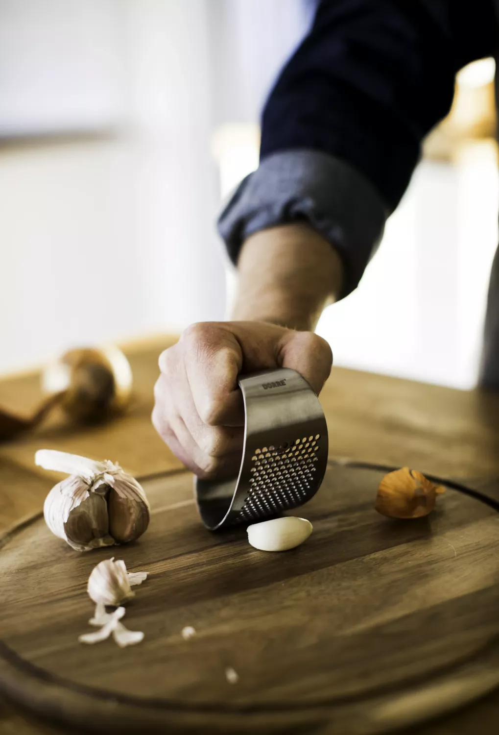 Stark och effektiv vitlökspress – enkel att använda och rengöra.