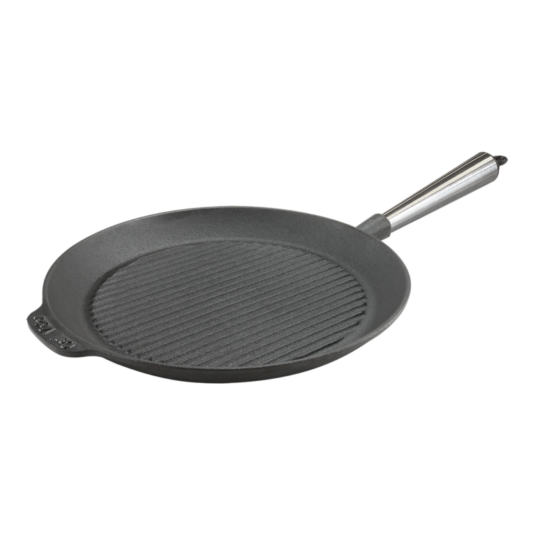 Grillpanna i gjutjärn från Carl Victor med stålhandtag. Slitstark, naturlig non-stick och redo att användas. Passar alla värmekällor.