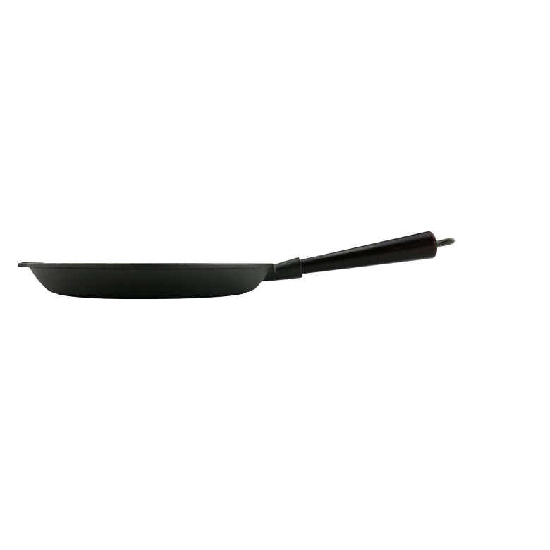 Stekpanna Gjutjärn 28cm Trähandtag, fördelar värmen mycket bra, tack vare gjutjärnets goda värmefördelning.