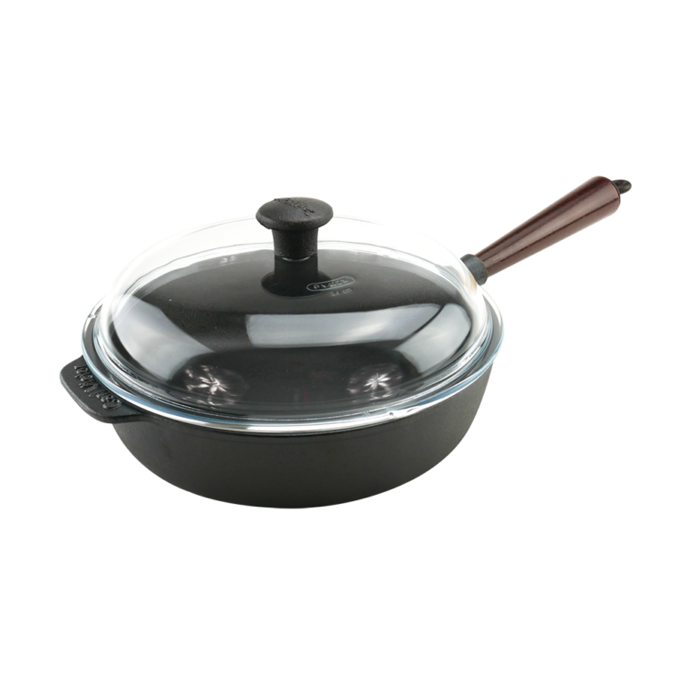 Gjutjärns traktörpanna 25 cm med Pyrex-glaslock och trähandtag – från Carl Victor
