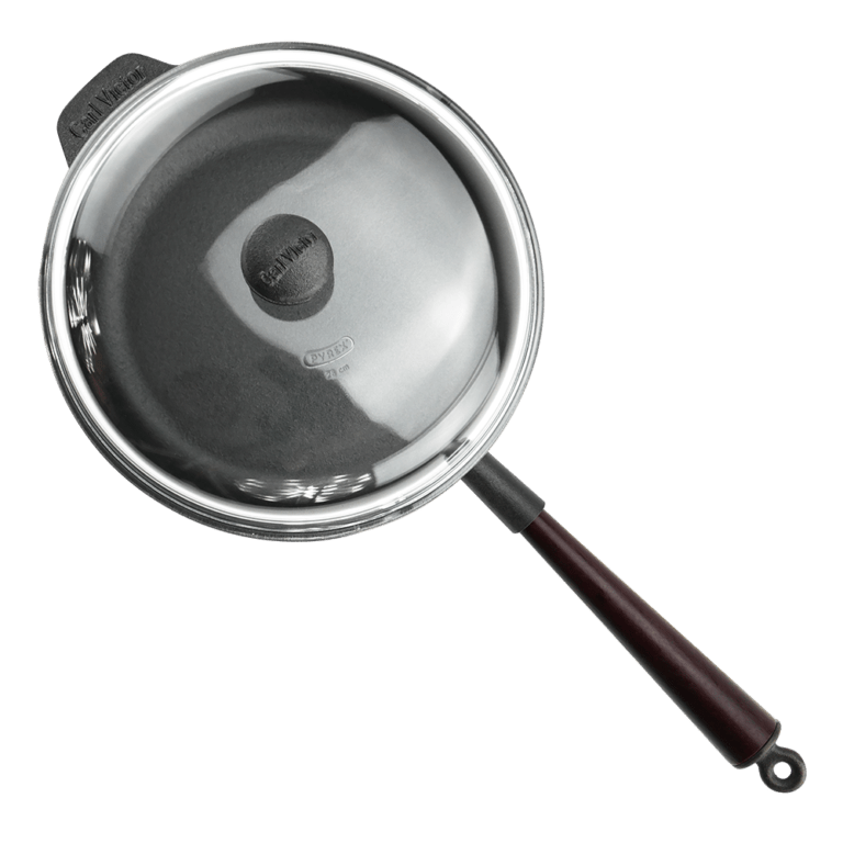 Gjutjärns traktörpanna 28 cm med Pyrex-glaslock och trähandtag är en klassisk och mångsidig panna från Carl Victor, framtagen för matlagning som kräver både stekning och varsam tillagning. Det massiva gjutjärnet ger jämn värmefördelning och utmärkt värmehållning, vilket gör pannan idealisk för grytor, pastarätter, såser och långkok.