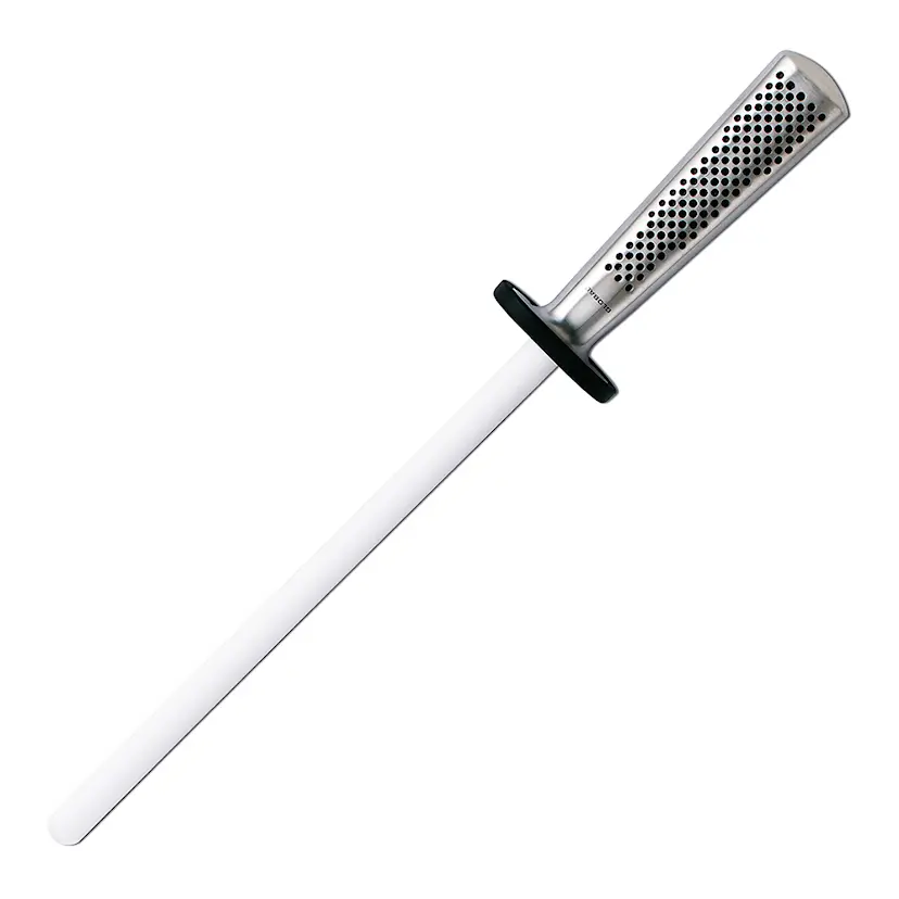 Keramisk skärpstav som är ett utmärkt sliptillbehör för dina köksknivar. Denna skärpstav, tillverkad av högkvalitativ keramik i rostfri färg, säkerställer att dina knivar alltid är vassa och redo för användning. Med en längd på 24 cm erbjuder den optimal kontroll och precision vid slipning. Idealisk för både professionella kockar och hemmakockar. Förbättra hållbarheten och prestandan på dina knivar med Globals Keramiska Skärpstav 24 cm