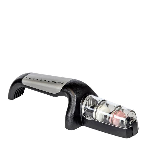 Globals våtslip med två hjul – grov och fin – gör knivarna vassa på några sekunder. Enkel, snabb och effektiv slipning hemma.