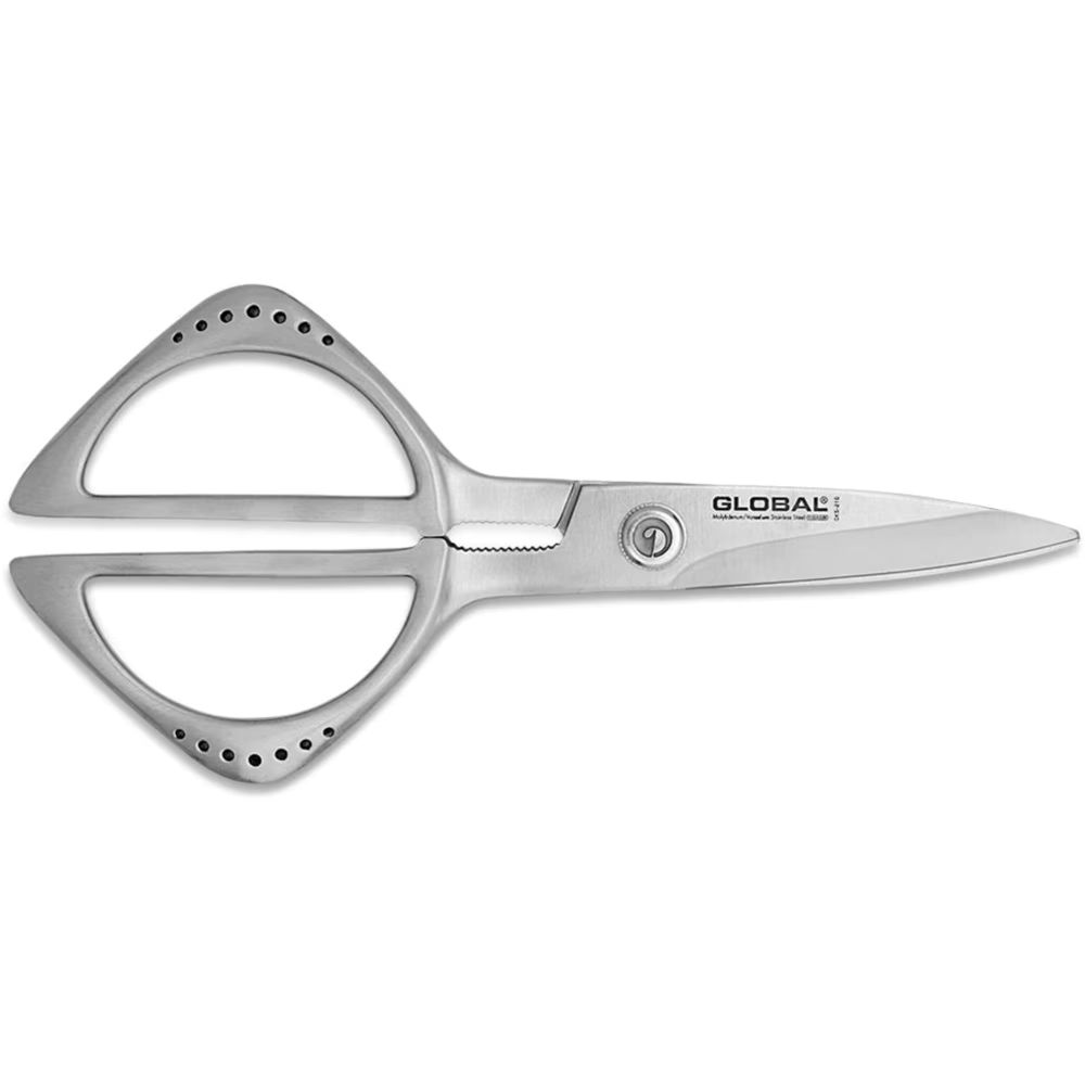 Globals sax GKS-210 på 21 cm är en smart och mångsidig hjälpreda i köket. Den har greppande tänder inuti handtagen som gör det enkelt att öppna skruvkorkar eller använda saxen som nötknäppare. Med den justerbara skruven kan du dessutom anpassa bladens spänning efter behov. Tillverkad i högkvalitativt japanskt rostfritt stål, är saxens blad mikrotandat för extra precision och effektivitet. Precis som Globals övriga produkter kombinerar denna sax genomtänkt design med förstklassig kvalitet.