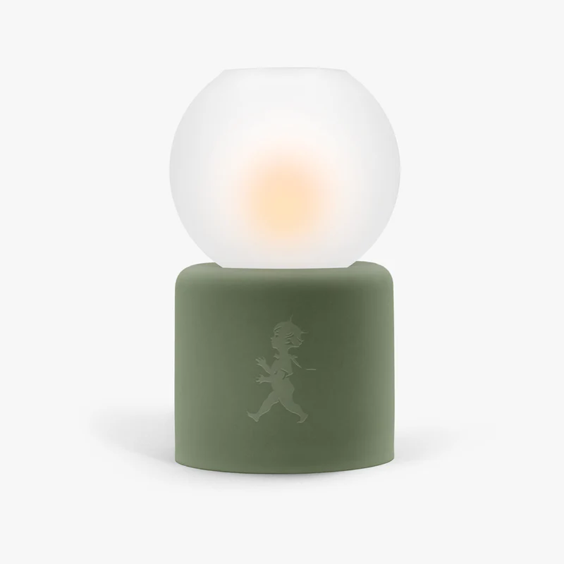 För att skapa en illusion av en lampa utan sladdar har de valt ett frostat glas som avger ett varmt sken, utan att avslöja det levande ljuset.