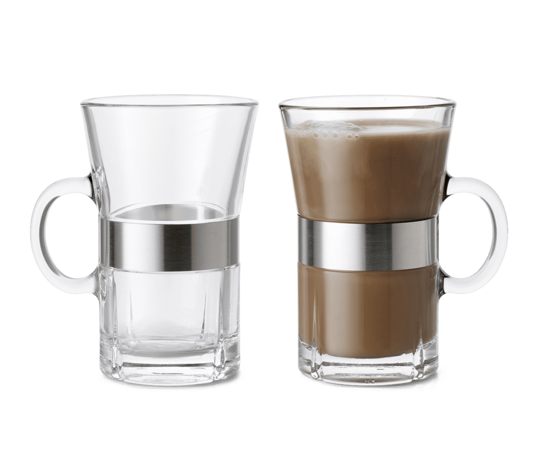 De här hot drink-glasen är oväntat rymliga och perfekta till morgonkaffet eller en mysig stund med caffe latte, te eller varm choklad. Tack vare den enkla designen, storleken och greppet passar de in i de flesta hem. Tål diskmaskin. Matcha gärna med andra delar ur samma serie!