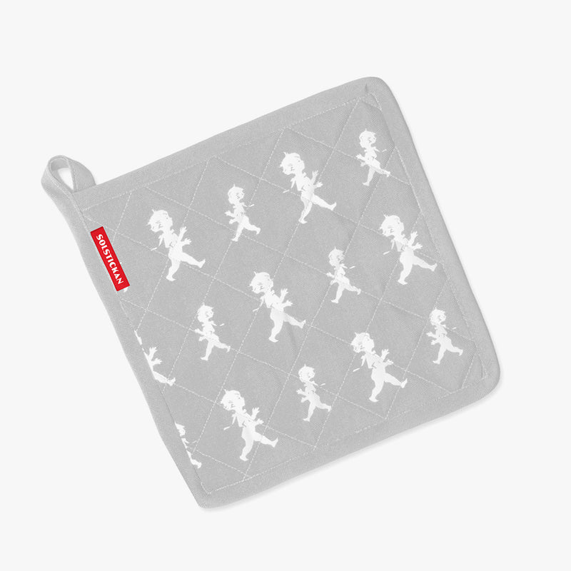 En klassisk vadderad grytlapp tillverkad i 100% bomull med det ikoniska avbildningen av Solstickanpojken.