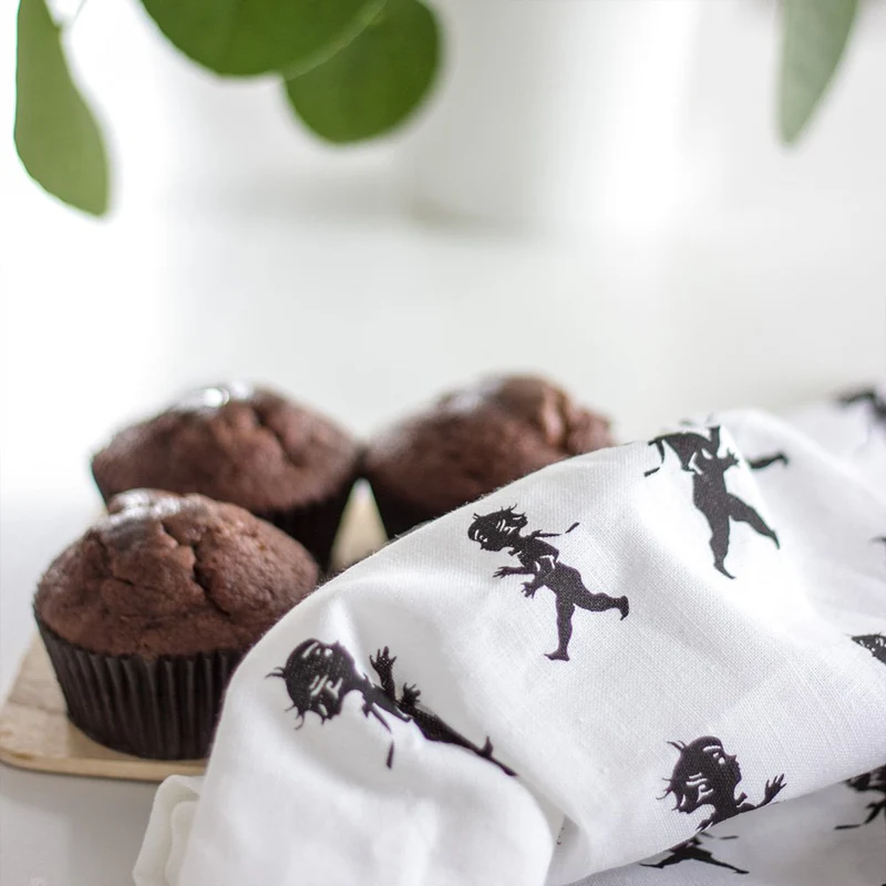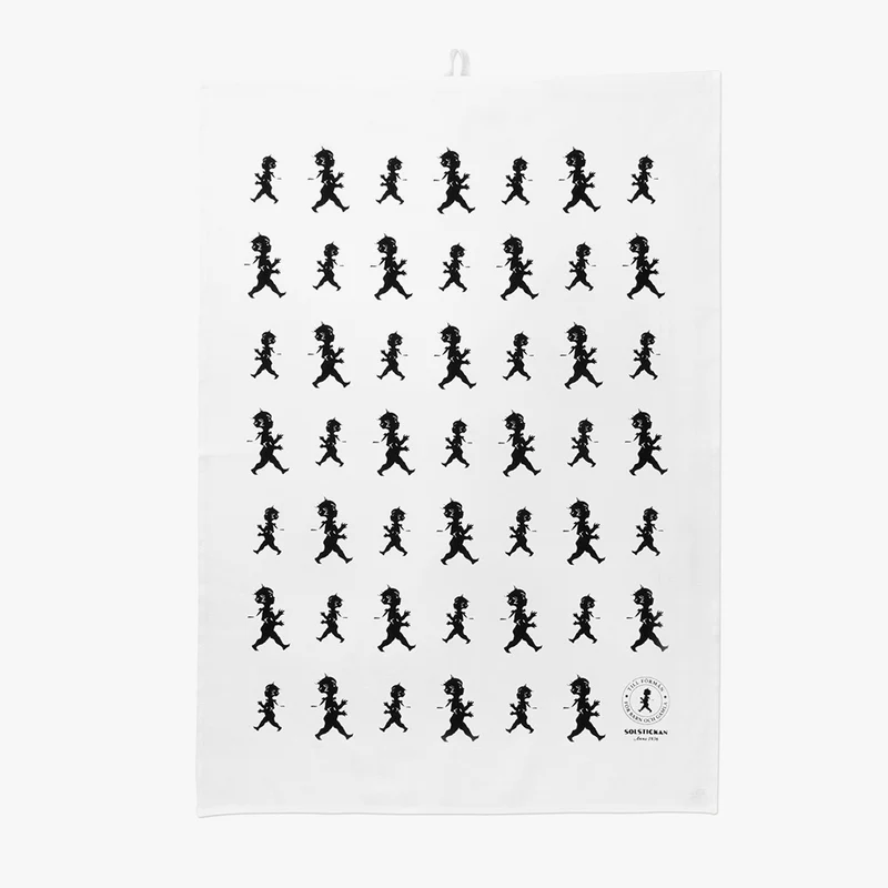 Elegant kökshandduk med Solstickepojken, designad av Einar Nerman. Tillverkad i Sverige i linne och bomull – finns i flera fina färger.