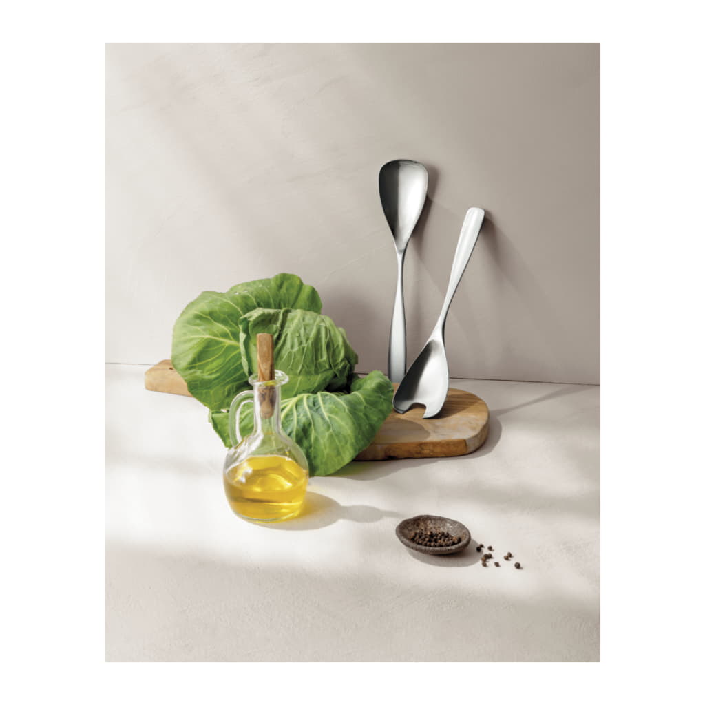 Salladssetet från Hardanger-serien av Hardanger Bestikk är det idealiska komplementet till vilken salladsskål som helst. Med en perfekt balans mellan form och funktion erbjuder detta set en smidig och stilfull serveringsupplevelse. Salladsskeden och salladsgaffeln har ergonomiska handtag och ett generöst djup som gör dem bekväma att använda. Tillverkat av högkvalitativt 18/10 rostfritt stål, är setet diskmaskinssäkert och levereras med livstidsgaranti. Salladssetet kommer i en vacker presentförpackning och innehåller: - En serveringssked, längd: 26,9 cm - En salladsgaffel, längd: 26,8 cm Att använda rätt bestick till rätt maträtt förhöjer inte bara smaken, utan skapar också en festlig atmosfär för alla vid bordet. Hardanger Bestikk erbjuder ett brett sortiment av bestickserier som passar olika tillfällen och typer av mat. Dessa set är perfekta att samla på över tid, fungerar utmärkt som presenter, och låter dig skapa en elegant dukning både till vardags och till fest året om.
