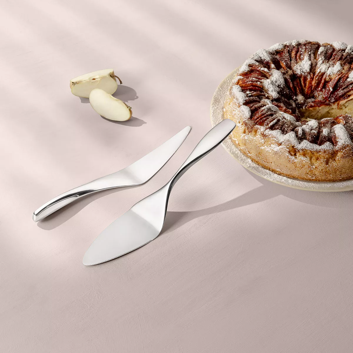 Besticken är tillverkade i högkvalitativt rostfritt stål som ger både hållbarhet och en exklusiv känsla i handen. Den genomtänkta designen ger en bra balans och gör redskapen bekväma att använda vid servering. Tårtkniven är utformad för att skära rena snitt i både mjuka och fastare tårtor, medan tårtspaden gör det enkelt att lyfta och servera varje bit.