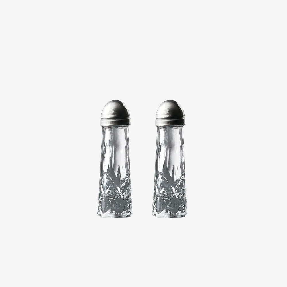 Salt- och pepparsetet Harvey från Aida har ett elegant kristallglasinspirerat mönster och ger din dukning en lyxig touch.