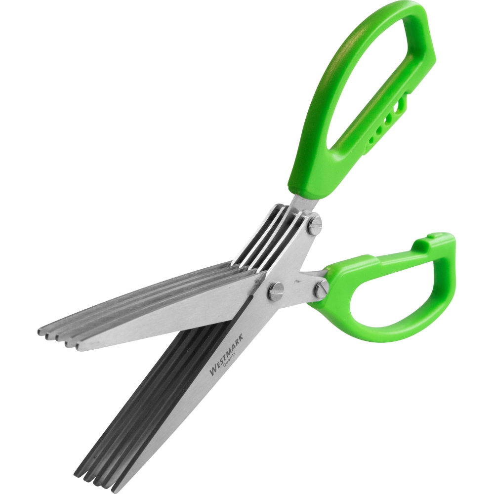 Kräuter-Fee örtsax med 5 rostfria blad för snabb och jämn klippning av färska örter. Levereras med rengöringskam för enkel rengöring.