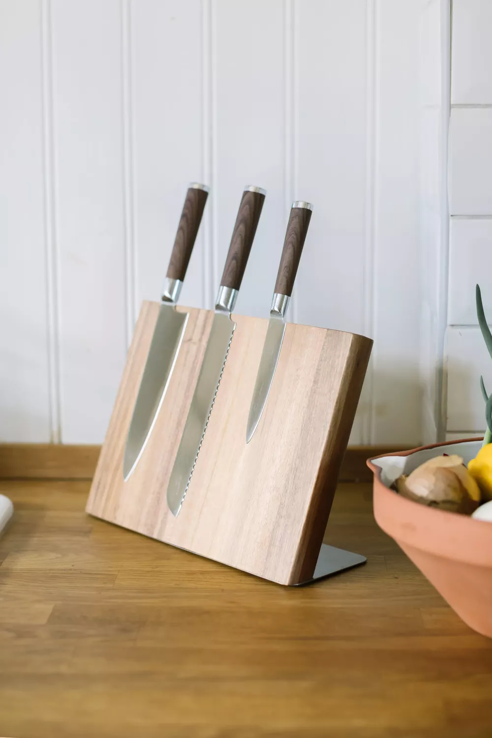 Hugo Knivställ XL Magnet Akacia,Knivställ med magnet, XL-storlek i akaciaträ för snygg och säker förvaring av knivar.