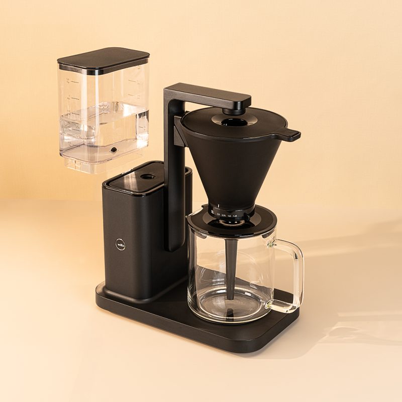 Den har avtagbar vattentank (1,25 l) för enkel påfyllning, pumpteknologi som säkerställer färskt vatten vid varje bryggning och ett brett vattenmunstycke för jämn extraktion. Bryggaren håller perfekt temperatur (92–96 °C) och låter dig justera flödet för att anpassa styrkan. Den har värmeplatta med automatisk avstängning efter 40 min, rengöringsindikator, och är ECBC-godkänd för optimal bryggstandard.