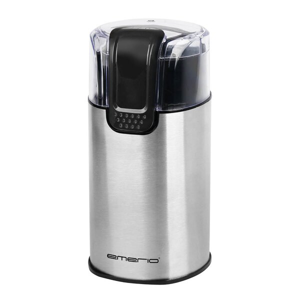 Elektrisk kaffekvarn från emerio maler upp till 60 g, stilren i rostfritt stål.