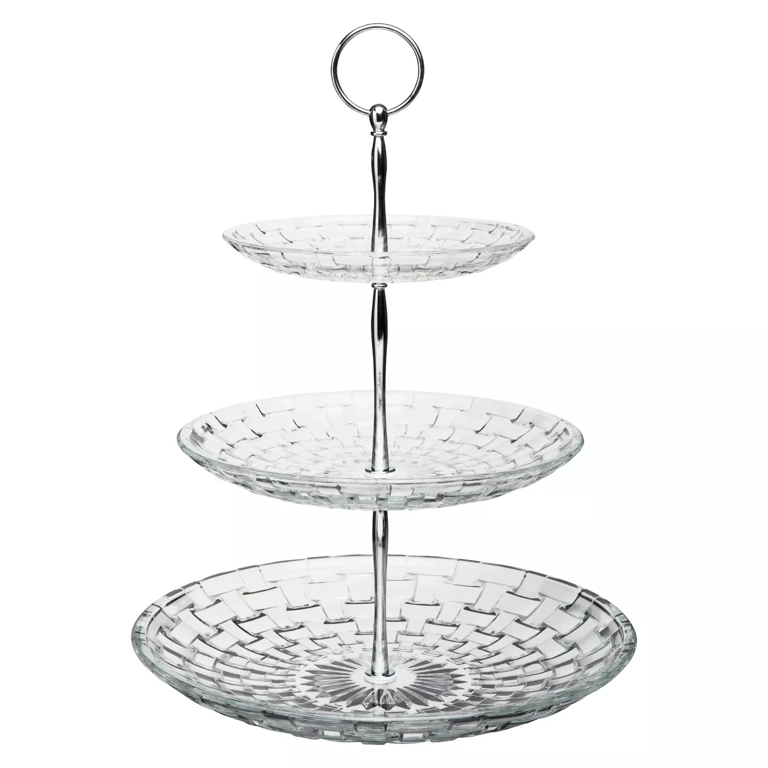 Glitter kakfat i klarglas med 3 våningar. Höjd 33 cm och diameter 25 cm. Perfekt för kakor, bakverk och festliga tillfällen.