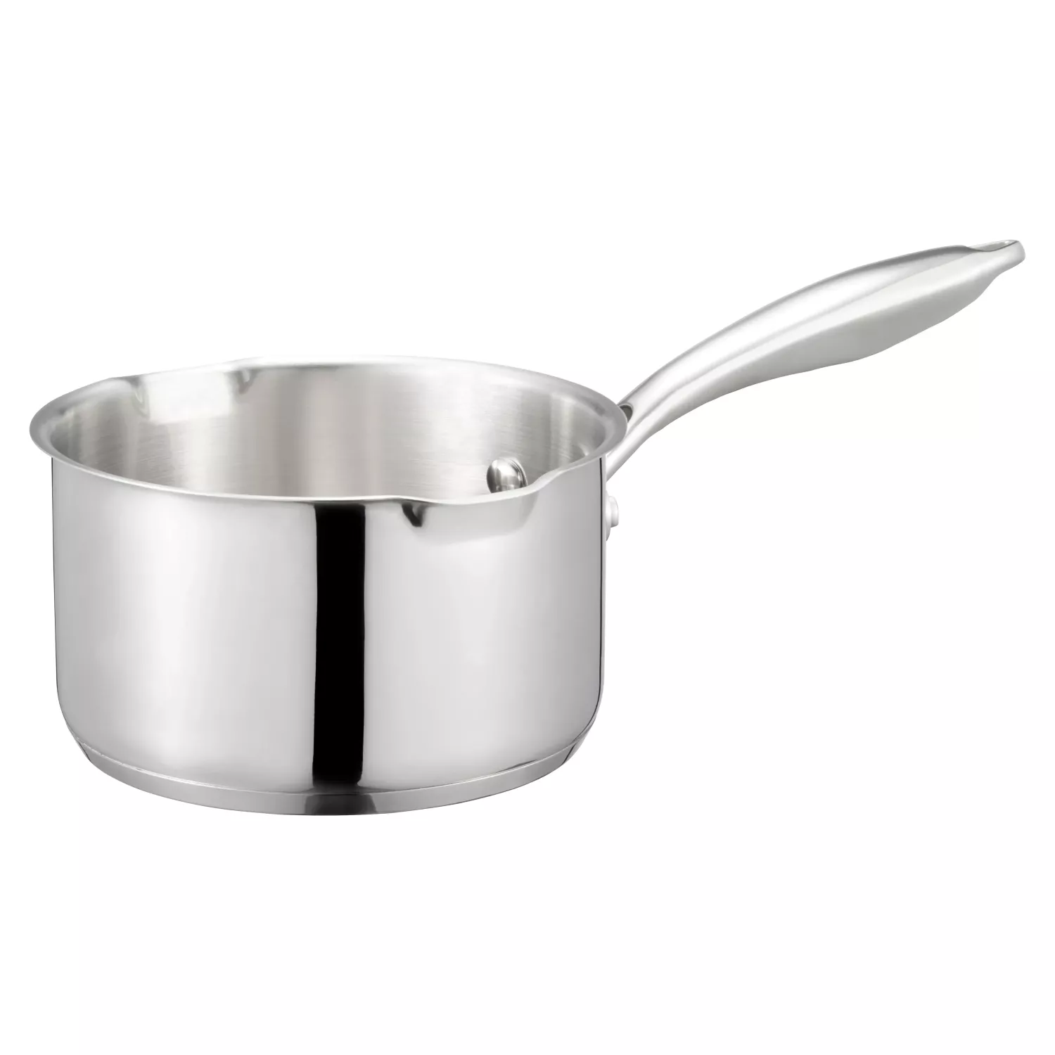 Dorre Karla kastrull 1,5 L i rostfritt stål och aluminium för jämn värmespridning. Passar alla spisar. Lock med silikonkant för tät förslutning.