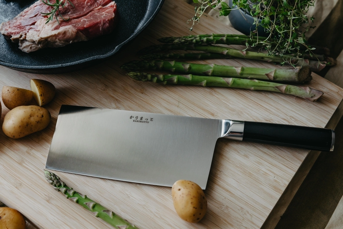 Den Kinesiska hackan är en stor fyrkantig kniv med ett riktigt brett blad, tunn och sylvass egg där varje del av bladet kan användas.