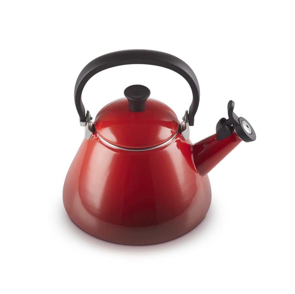 Kitteln har ett värmebeständigt handtag och en fast vissla som är lätt att öppna när vattnet ska hällas upp. Volym 1,6 liter vatten där den maximala vattenkapaciteten är markerad på sidan av kitteln för att undvika överkokning. En uppdaterad variant av den klassiska "visseljohannan". Matcha gärna kitteln med andra färgglada kärl från Le Creuset!