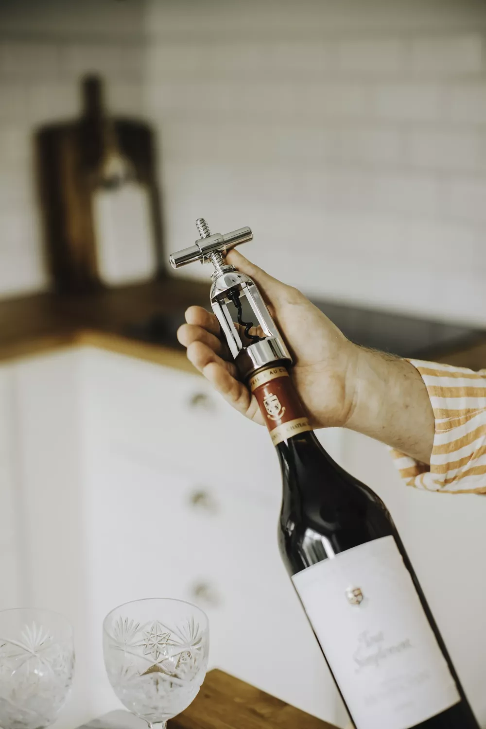 Kore korkskruvöppnare – stabil och stilren hjälpreda för att enkelt öppna vin- och champagneflaskor utan att korken går av.