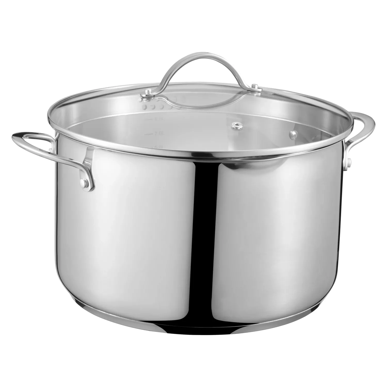 Kosmos gryta 10,1 L med tredubbel lager för snabb, jämn värme och hållbarhet. Glaslock och ergonomiska handtag för enkel och säker matlagning.