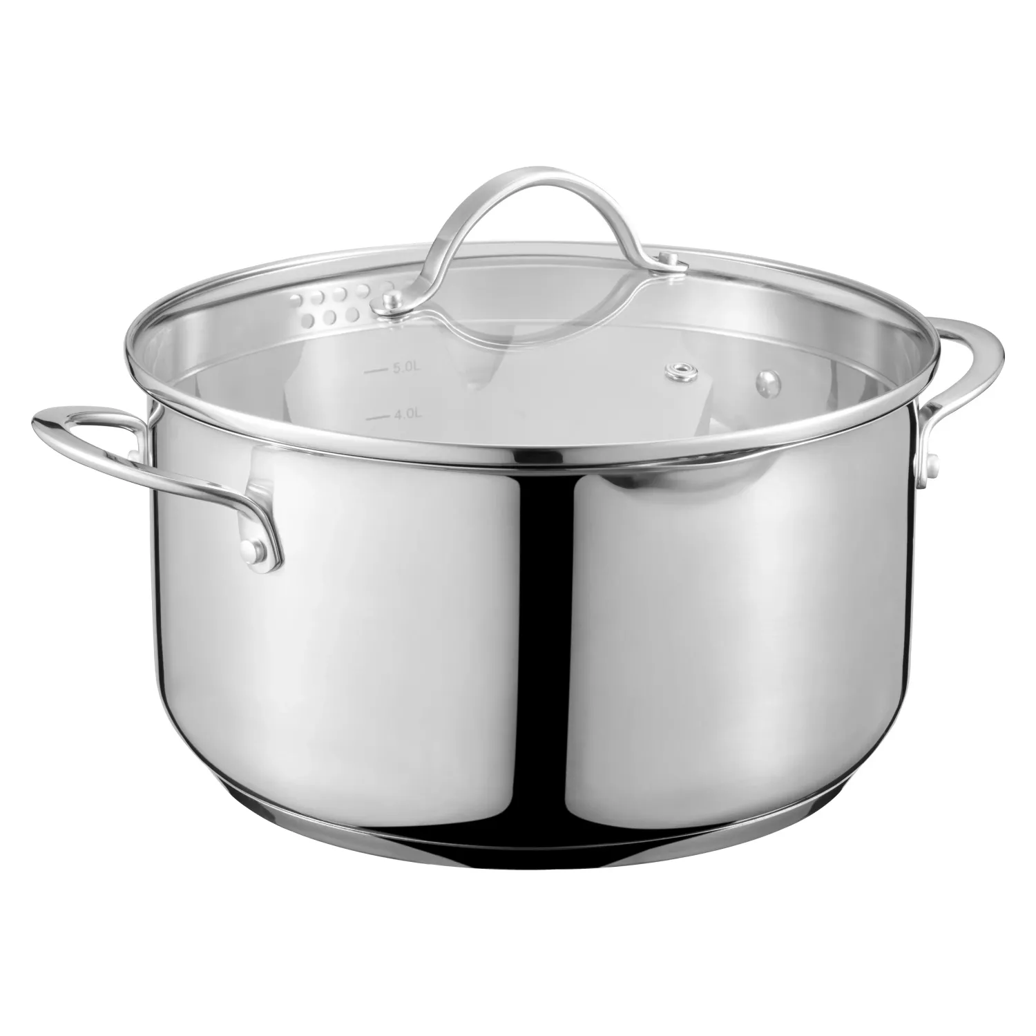 Kosmos gryta 7,1 L med 3-lagers konstruktion för jämn värme och hållbarhet. Glaslock och ergonomiska handtag för enkel övervakning och säker hantering