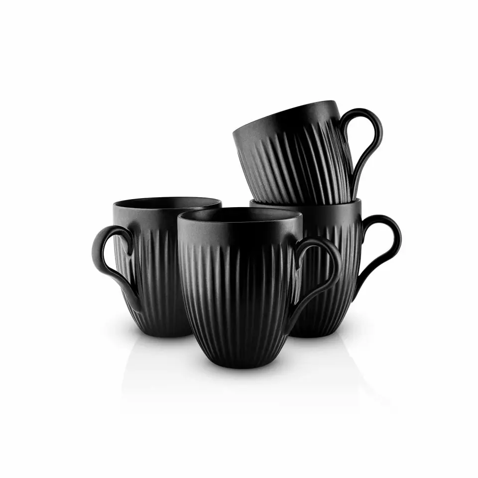 Njut av din varma favoritdryck. Den charmiga muggen passar perfekt till morgonkaffet eller kvällsteet. Legio Nova black är en nytolkning av den populära Legio Nova-stilen med en mattsvart finish inspirerad av det rustika nordiska köket. Med sin mörka färgskala och de karakteristiska räfflorna tillför serien alla bordsdukningar djup och en spännande kontrast. Stengodset är av högsta kvalitet och tål allt från ugn och frys till mikrovågsugn och diskmaskin.