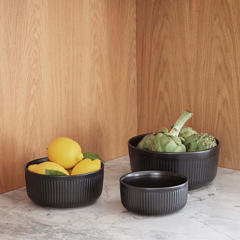 Skålen skapar en elegant inramning till alla uppläggningar. Den pryder sin plats och är praktisk såväl på det stora middagsbordet som på vardagens köksbord. Använd den till servering av sallad, pasta, grönsaker eller som fruktskål. Legio Nova Black är en nytolkning av den populära Legio Nova-stilen med en mattsvart finish inspirerad av det rustika nordiska köket. Med sin mörka färgskala och de karakteristiska räfflorna tillför serien alla bordsdukningar djup och en spännande kontrast. Stengodset är av högsta kvalitet och tål allt från ugn och frys till mikrovågsugn och diskmaskin.
