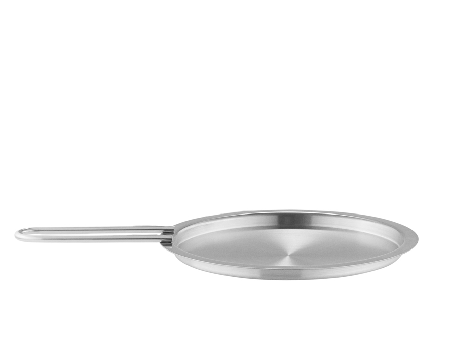 Smart design för enkel förvaring och säker användning. Locket kan enkelt staplas tillsammans med andra lock i samma serie eller hängas upp på en krok för att spara plats i köket. Det långa handtaget på sidan ger ett tryggt och säkert grepp, vilket gör det enkelt att lyfta locket utan risk för brännskador. Under matlagningen kan locket även användas för att hålla mindre rätter varma. Efter användning tål locket diskmaskin, vilket gör rengöringen snabb och bekväm.