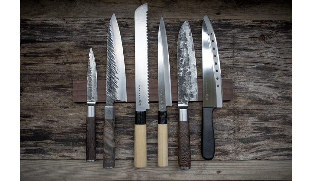 Satake knivlist för väggmontering i vacker valnöt 35cm.