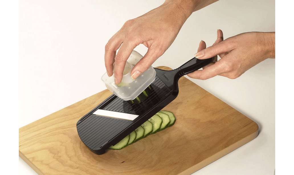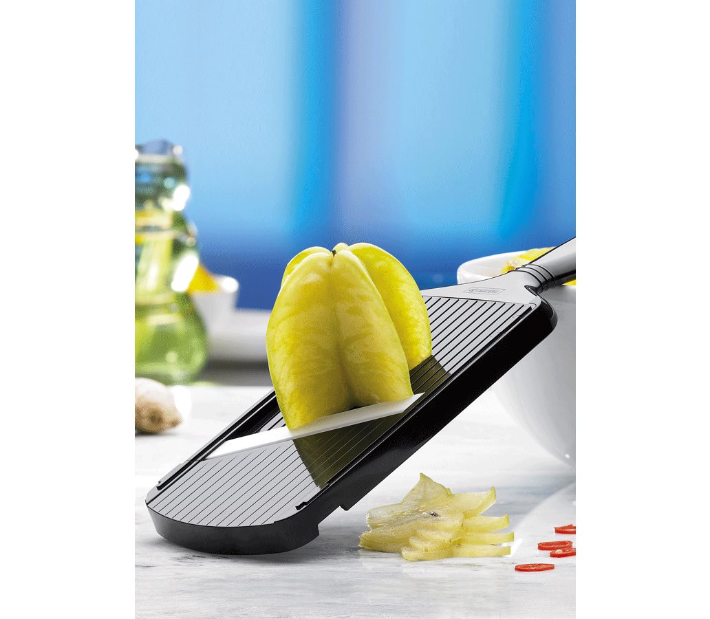 Skivar jämnt och snabbt med justerbar tjocklek – keramiskt blad. Kyocera mandolin med keramiskt blad.