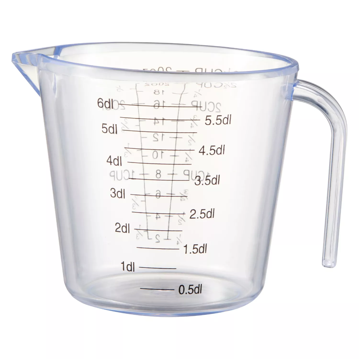 Praktisk måttbägare i plast – 0,6 liter med graderad skala.