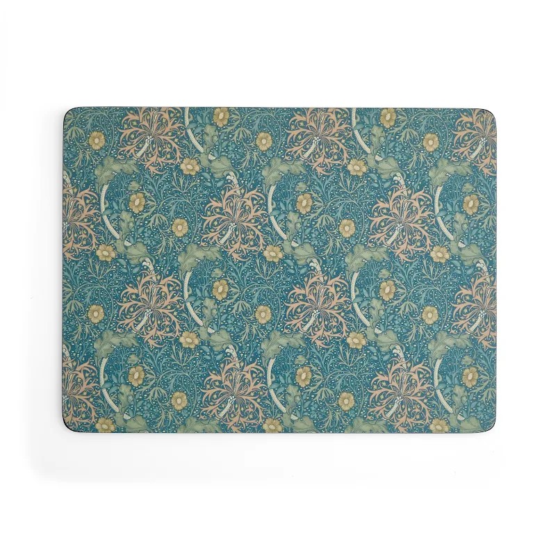 Bordsunderlägg från William Morris & Co med slitstark kork- och lövträskiva. Lätt att rengöra med fuktig trasa. Mått: 40×30×1 cm.