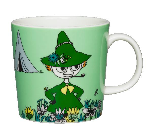Muminmugg Snusmumriken från Arabia i grönt. Originalmotiv av Tove Jansson. Samla fler figurer och skapa din egen Mumindal i köksskåpet.