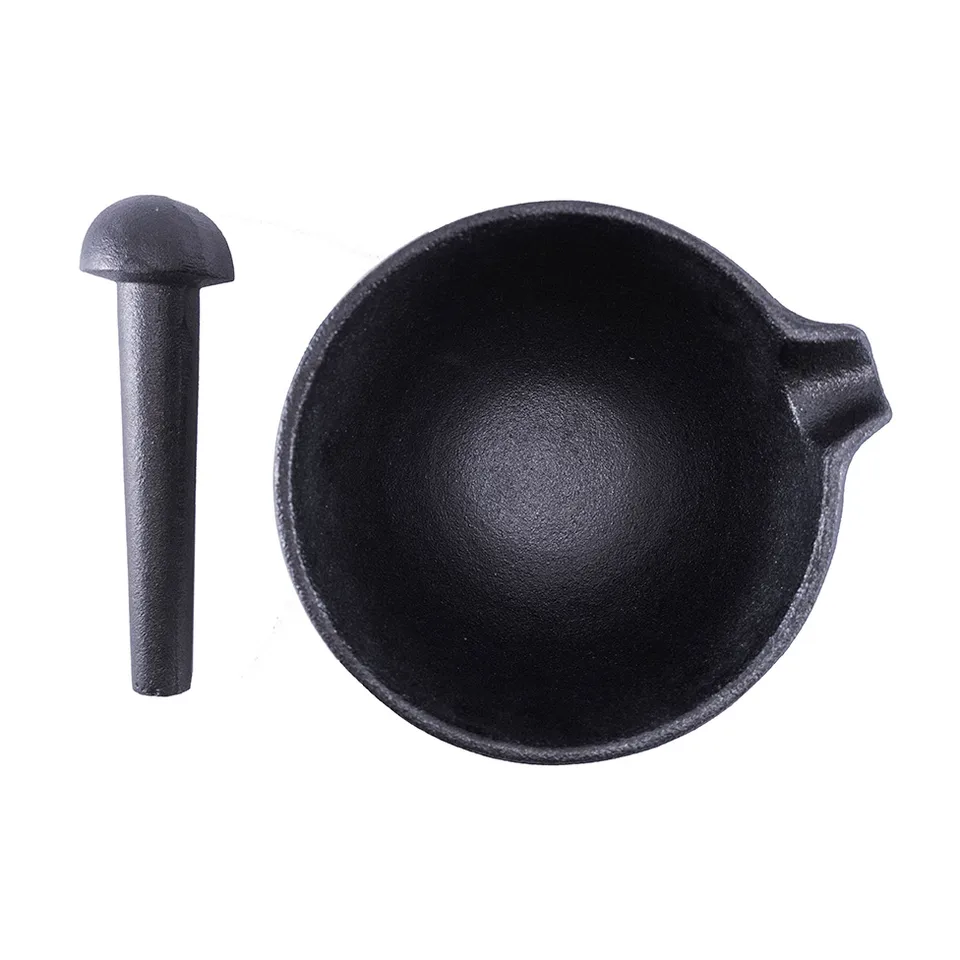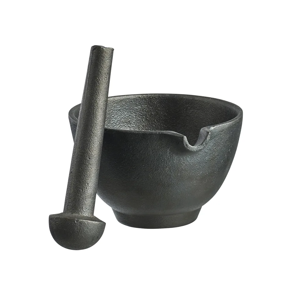 Satake gjutjärnsmortel med pip – krossa kryddor och mixa röror, häll ut enkelt. Robust kvalitet med matchande stöt.